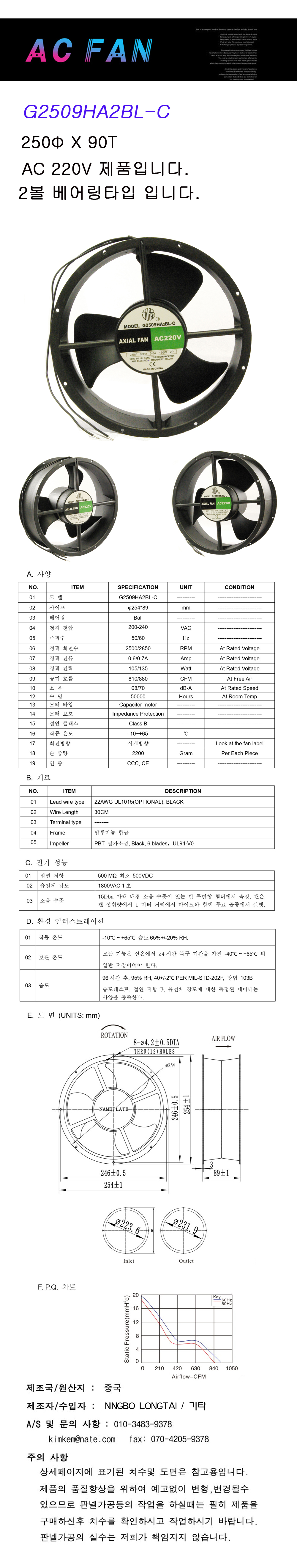AC FAN (Ningbo Longtal)/G2509HA2BL FAN (250mm)